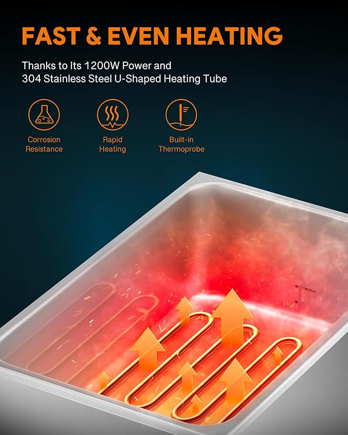 • Keep Your Food Warm: Wilprep's 1200W commercial food warmer, equipped with a stainless steel U-shaped heating tube, ensures rapid and uniform heating, keeping your dishes fresh and ready to serve for extended periods.