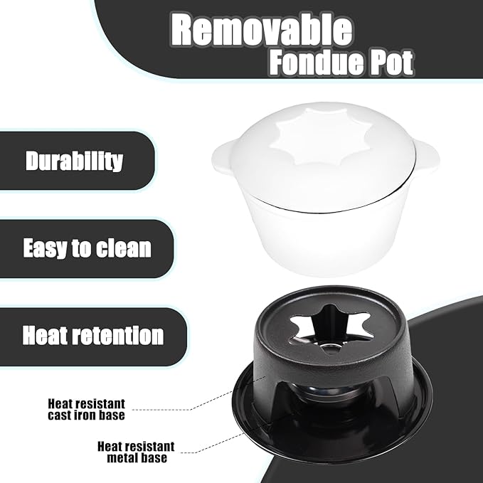 • Versatility and Elegance: our fondue set can be used for a variety of fondues, including cheese, chocolate, and oil-based fondues. It can also be used for cooking stews and soups. Suitable for oven and all stove types. Its stylish design will add a touch of elegance to your dinner party or gathering.
