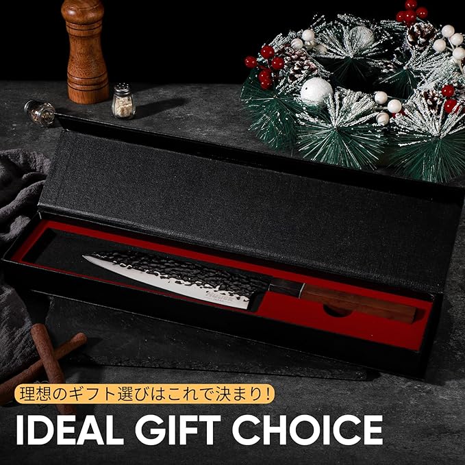 • Japanese Craftsmanship: Each Japanese chef knife is hand hammered by skilled Japanese artisans, reflecting centuries of traditional knife-making techniques and cultural heritage. From the forging of the blade to the molding of the handle, meticulous attention to every detail makes this knife not only perform well, but also feel a sense of craftsmanship in every piece.
