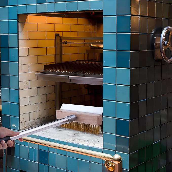 • 【Durable Material】: Created of sturdy steel and aluminum, this pizza oven brush is outfitted with metal bristles and stainless steel scrapers to remove built-up rust and burned-on food buildup.No possibility such as the handle breaking up or snapping.