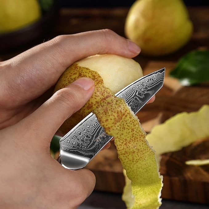 • Long-Lasting Sharpness: Each blade is honed to a 12–14 degree sharpening angle, ensuring outstanding edge retention and precise cutting performance. The Damascus steel with VG10 core provides strength, durability, and reduced sharpening frequency