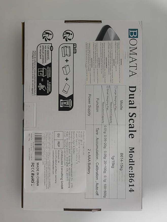 BOMATA 0.01g/500g & 1g/15kg Dual Platform Kitchen Scale with Two Precisions, Accumulation Function, Gram and Ounce, Digital Scale for Food, Baking, Yeast, Jewelry B614