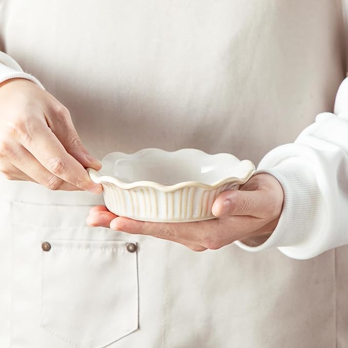 • 【Suitable for Parties and Gatherings】The Vancasso ceramic mini pie pans have a 9-ounce capacity, a diameter of 5.2 inches, and a depth of 1.5 inches. They are the ideal single-serving size for regulating meal portions and producing individual desserts for all of your guests. Everyone can enjoy wonderful cuisine without worrying about overeating. They're perfect for quiches, chicken pot pies, and fruit pies like apple, peach, and blueberry. They're also fantastic for holding chopped ingredients, peanuts, chocolates, garnishes, sauces, and more