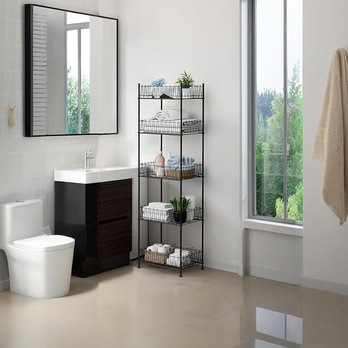 • 【Perfect Size, Large Capacity】 Size: 16.7"W x 12.5"D x 60.6"H, 5 layers in total. This water storage rack has enough space to store bottled water, soda coke, beer wine and other bathroom supplies. 3.9’’ H edge prevents items from falling. Ideal for keeping your items neatly organized!