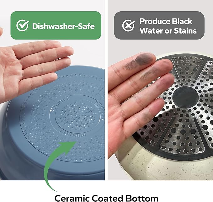 • Natural Dual-Sided Ceramic Coating: Redchef ceramic pots and pans set boasts an innovative dual-sided ceramic coating, inside and out; This advanced ceramic finish ensures effortless cleaning, allowing you to effortlessly wash both the interior and exterior of your pots and pans