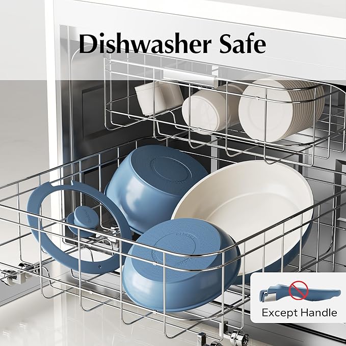 Redchef Ceramic Cookware Set, Removable Handle Pots and Pans Non-Stick, Rv Cookware Set, Non-Toxic Pots and Pans Set No PFAS, PTFE, PFOA, Detachable Pots and Pans, Dishwasher & Oven Safe(Blue)