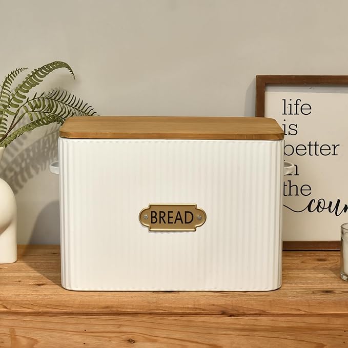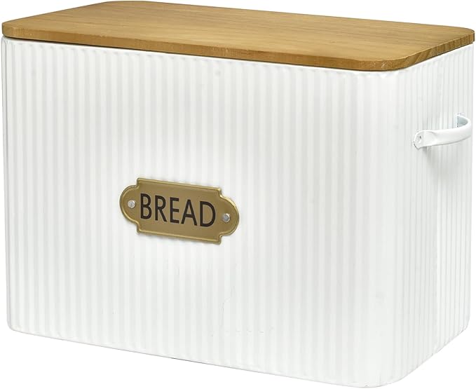 • Charming Farmhouse Design: Elevate the aesthetic of your kitchen decor with the charming farmhouse design and rustic wooden lid of our bread box. It's not just a bread holder; it's a statement piece that adds a touch of country styling to your space.