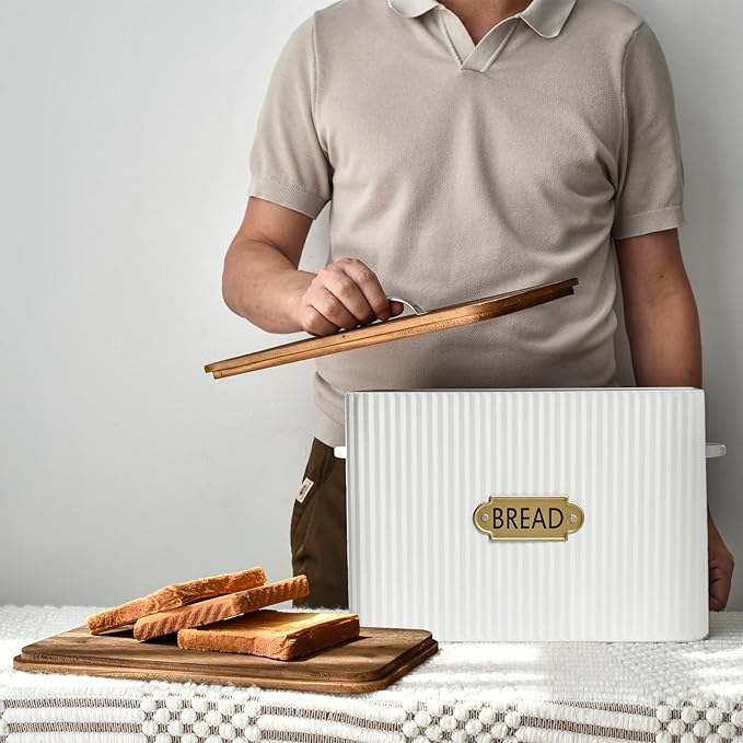 • Perfect Gift Idea: Our bread box comes in a designer gift box, making it the ideal present for any kitchen lover or special occasion such as weddings, housewarmings, or Christmas celebrations. Show someone you care with this practical and stylish addition to their home.