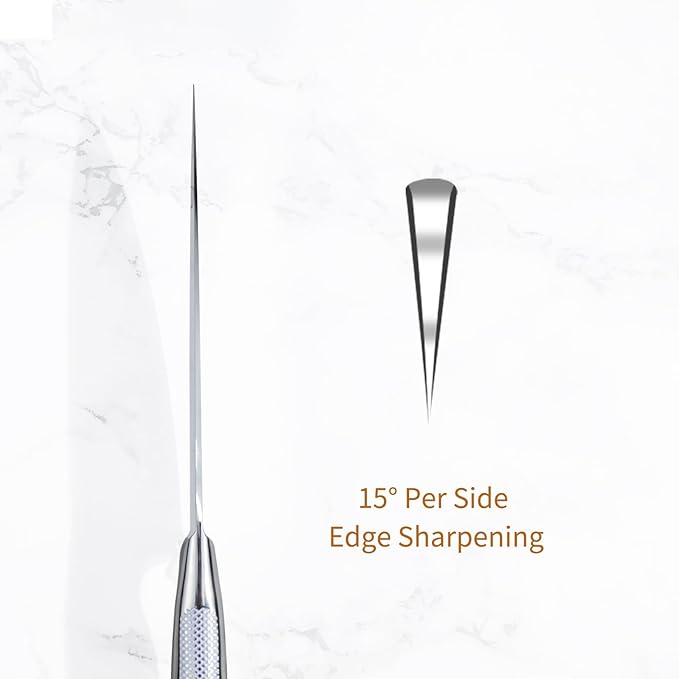 • Razor Sharp Mirror Polished Blade: The blade features a stunning mirror polish finish and is honed to a razor-sharp edge, allowing for smooth and precise cuts. Its superior sharpness makes slicing, dicing, and chopping a breeze, enhancing your overall cooking experience.