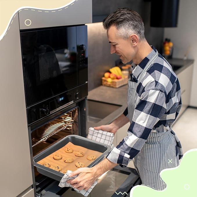 • Reliable Material Quality: enjoy the robust integrity of our quality non stick baking pans; Each piece is crafted from carbon steel known for its excellent heat distribution and durability; Its non stick coating ensures smooth and easy extraction of your bake, with no residue left in the pan