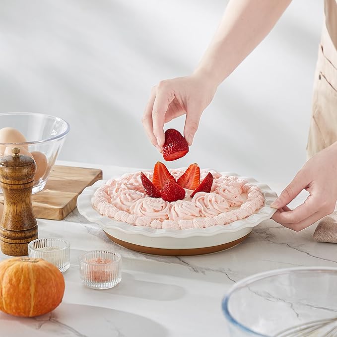 • 【Premium Nonstick Glaze】Featuring a lead and cadmium-free glaze, this pie plate offers superior nonstick performance, ensuring your baked goods come out effortlessly every time. Scratch-resistant and easy to clean, it's safe for dishwasher, refrigerator, and oven use.