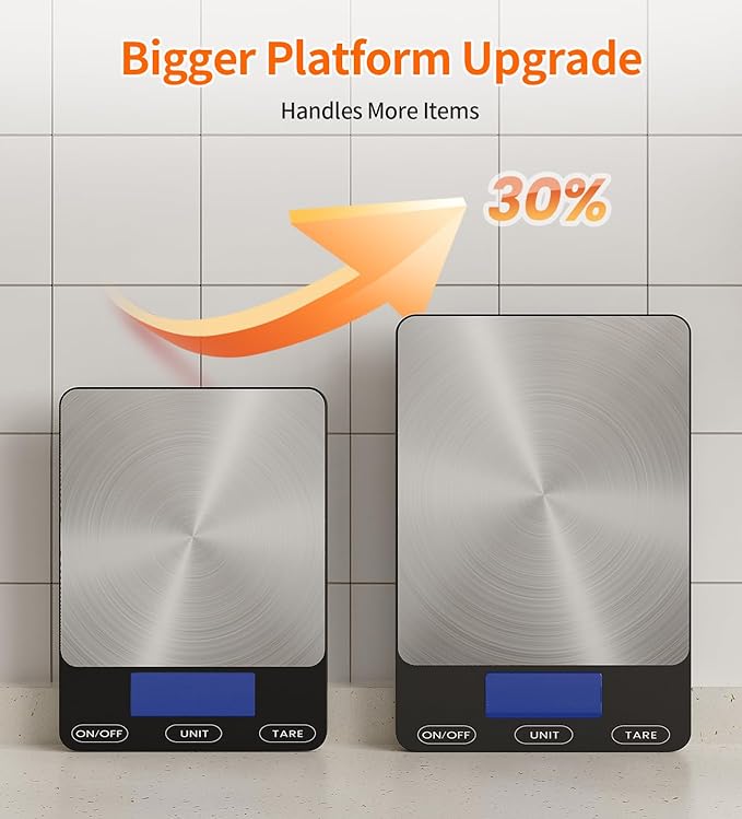 • 【Precise Weight Food Scale】Our Food Kitchen Scale equips four high-precision load sensors, waterproof Anti-collision glass weighing panel. Large measuring capacity with 1g precise graduation from 0.1oz/3g to 33 lbs/15kg.
