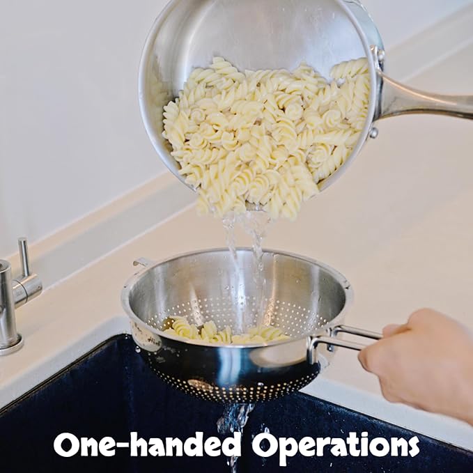• 【Easy to Clean】The one-piece, rivet-free design offers smooth, hygienic surfaces. Every inch of the colander is easy to scrub, with no crevices for food particles to hide.