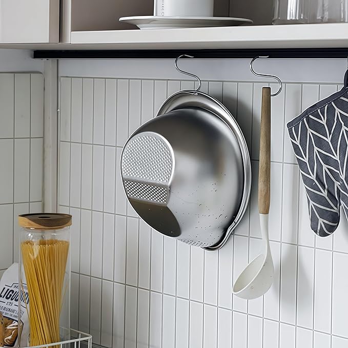 • Quick Drainage Colander Strainer: Equipped with fine drainage holes on the side, this stainless steel washing bowl ensures quick water drainage while preventing food from falling through.
