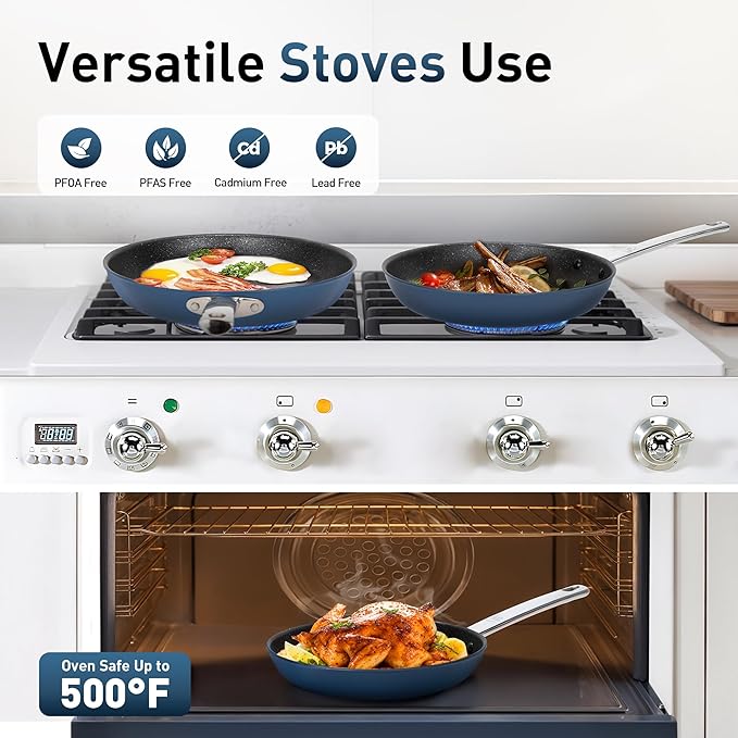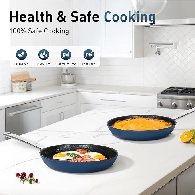 • 【Healthy Coating】: Non-stick cookware using plasma titanium and other high-tech composite material surface treatment, completely free of PFAS, PFOA, and other harmful substances, have better wear resistance and high temperature resistance performance