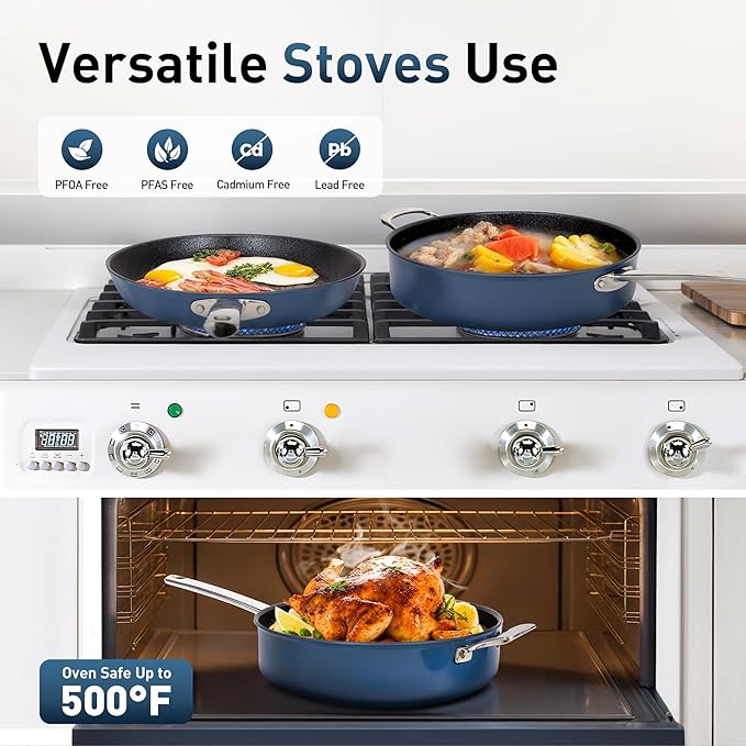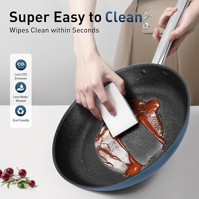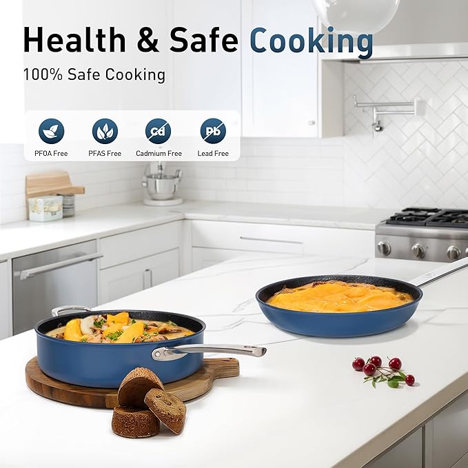 • 【Healthy Coating】: Non-stick cookware using plasma titanium and other high-tech composite material surface treatment, completely free of PFAS, PFOA, and other harmful substances, have better wear resistance and high temperature resistance performance