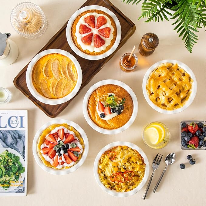 - 【Elegant Design & Safe for Daily】- Made from food-grade ceramic, non-toxic and lead-free, 1200°C high temperatures firing make small baking dish for oven are durable and sturdy, and ensures even heat distribution for perfectly baked crusts. Ruffled edge of the baking dish add an elegant touch to your baked goods, make your pies look professionally made and ready for any occasion.