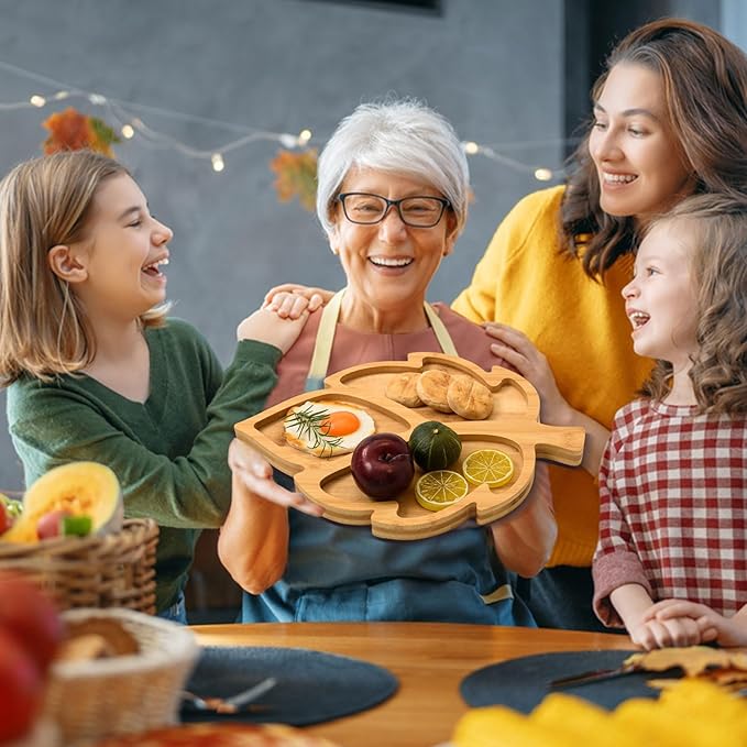 • 3 Grids Design:The leaf bamboo charcuterie board adopts a three-grid design, the grid design makes it perfect for serving food or placing small items, you can place different foods in different grids as needed, which can save space and allow guests to taste different foods, ideal for Thanksgiving parties, fall theme parties, autumn harvest parties, farmhouse theme parties and more