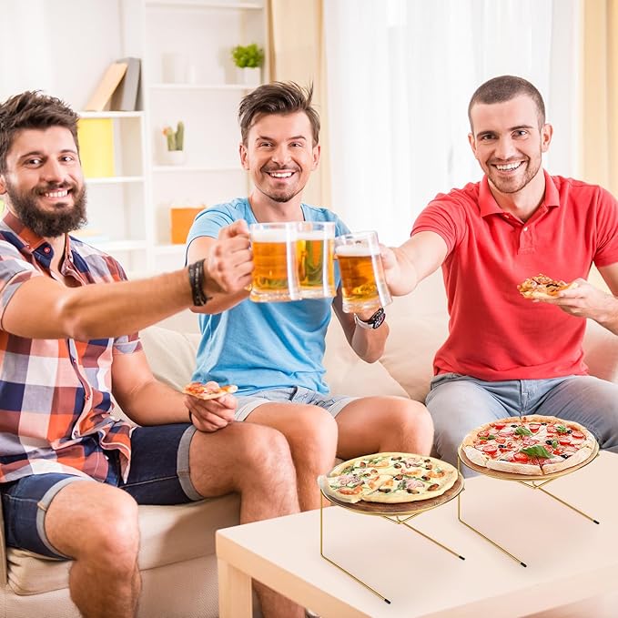 12 Pcs Pizza Stand Set: 4 Metal Stands, 4 Pizza Pans, 4 Spatulas for Weddings, Party(Gold,Classic)