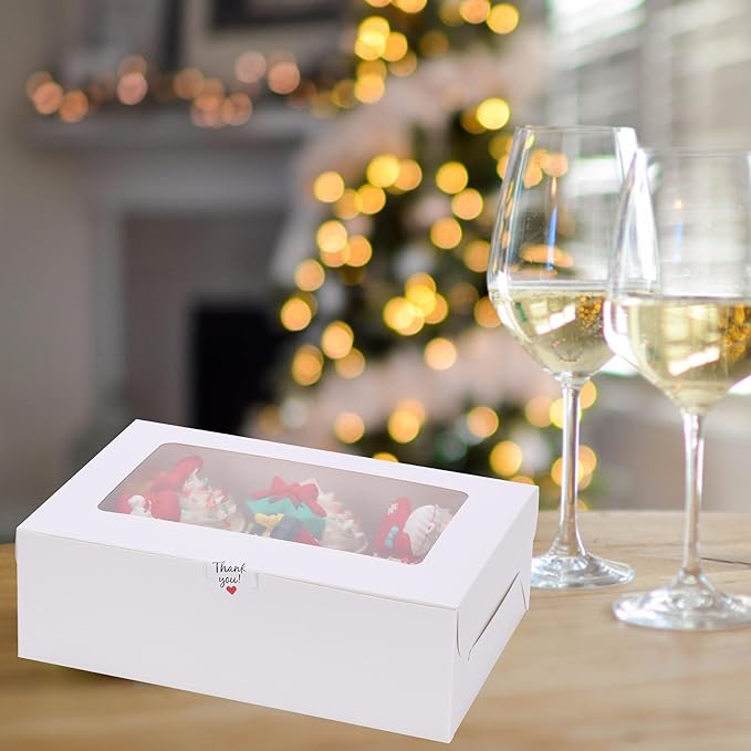 • What you can get: 20packs-6count White Paper bakery boxes with Pvc Window, 24 yards ribbons and 24 pcs white sticker.The internal support can protect 6 standard sized cupcakes or muffins during transport