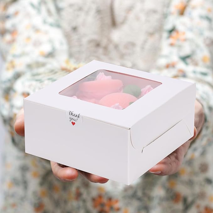 • Widely use:These pretty white cupcake boxes are perfect for keeping all your delicious bakary safe. They are great for storing freshly baked donuts, mini cakes, pies, cupcakes, muffins, cookies, chocolate covered fruit, and keeping them away from the mess and from getting dirty