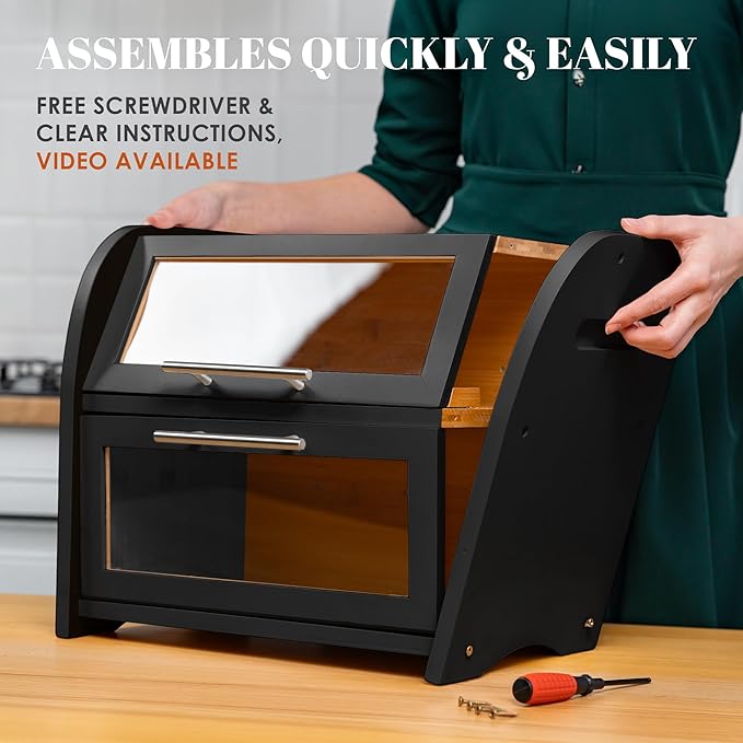 - ASSEMBLES EASILY, BUILT TO LAST. IT’S A KEEPER! Assembles in under 10 minutes, ready to perform for years. Premium bamboo and top grade fittings make this sturdier than most bread boxes you’ll find. Apace Living takes your satisfaction seriously, and that’s why all our products are backed by a 100% No-Hassle RISK FREE Money Back Guarantee. No questions asked!
