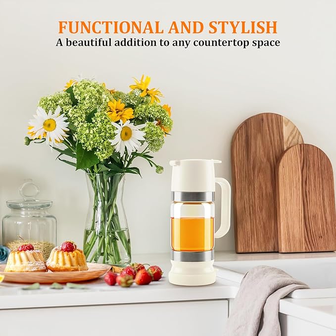 • NO-DRIP POURING: Say goodbye to sticky messes with our glass honey dispenser! Simply press the trigger on the handle to enjoy a smooth flow of honey. Release the trigger, and the flow stops instantly, ensuring no drips or spills on your countertop.