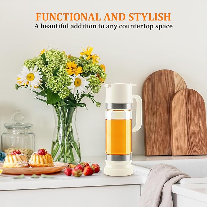 • NO-DRIP POURING: Say goodbye to sticky messes with our glass honey dispenser! Simply press the trigger on the handle to enjoy a smooth flow of honey. Release the trigger, and the flow stops instantly, ensuring no drips or spills on your countertop.