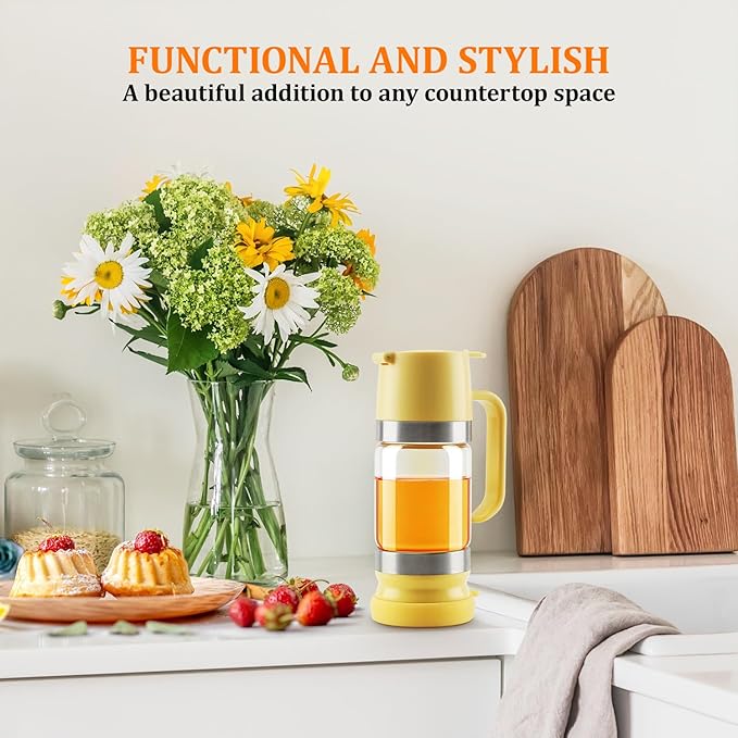• NO-DRIP POURING: Say goodbye to sticky messes with our glass honey dispenser! Simply press the trigger on the handle to enjoy a smooth flow of honey. Release the trigger, and the flow stops instantly, ensuring no drips or spills on your countertop.