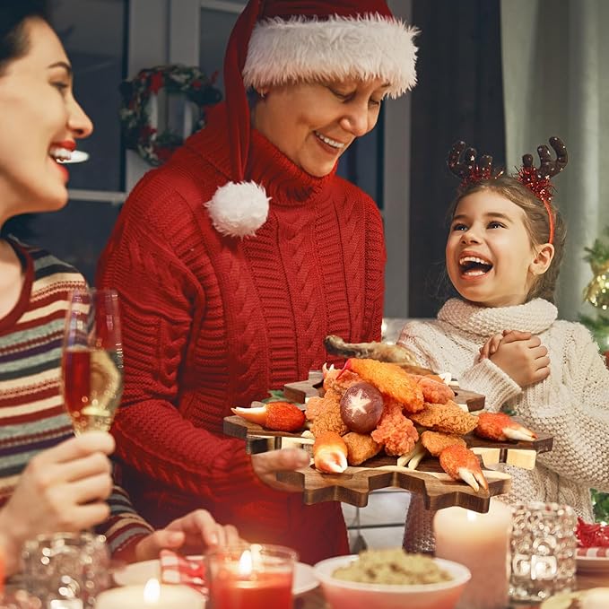 • Snowflakes Design: experience the elegant charm of our Christmas wooden appetizer tray with snowflakes handles; These handles are not only aesthetically pleasing but also incredibly functional; They provide a sturdy grip, making it easier to carry the platter around, reducing the risk of accidents in your kitchen