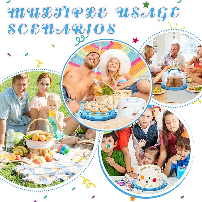 • Multipurpose Design: The cake carrier bottom of the base has 2 serving trays, which can carry different styles of cakes, and three sturdy clamps on the base securely lock the lid in place, to ensure the inside stuff will be airtight stored and won’t drop off.
