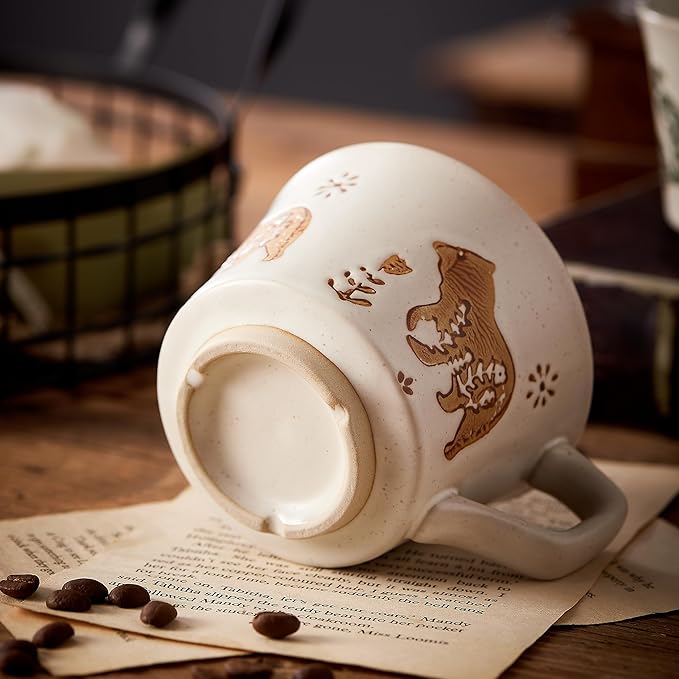 12oz Vintage Ceramic Coffee Mug Set of 4 - Handmade Stoneware Pottery Countryside Farmhouse Fall Autumn Tea Mugs with Big Handle for Latte,Cocoa,Dishwasher & Microwave Safe Cups (Animals)