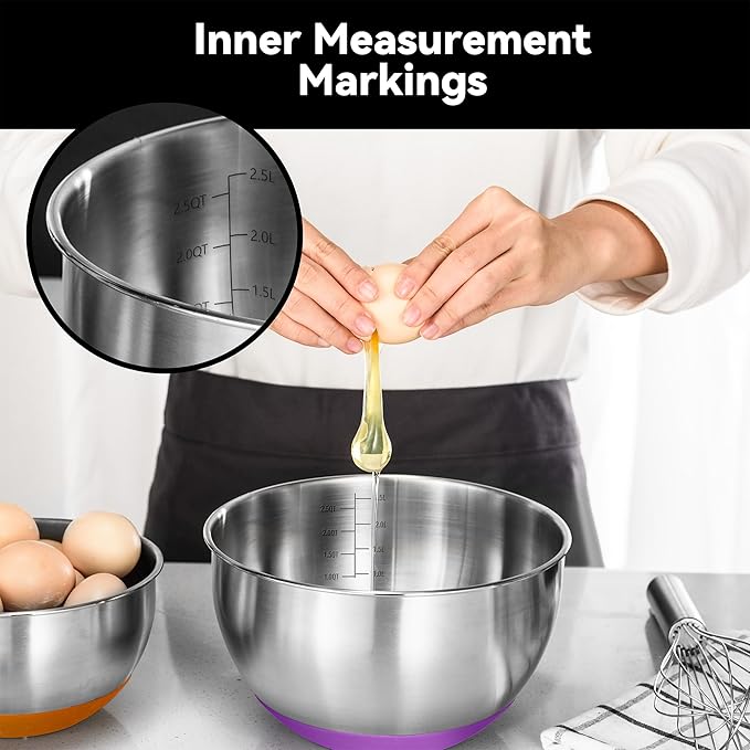 • 【Non-Slip Base and Graduated Markings】: Enjoy stable mixing with the non-slip base and use the convenient internal measuring lines for precise ingredient additions, streamlining your cooking process.