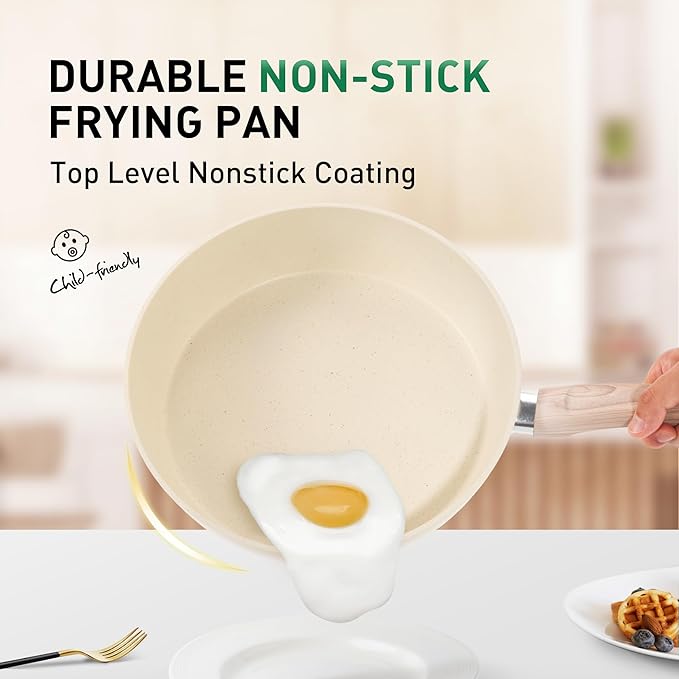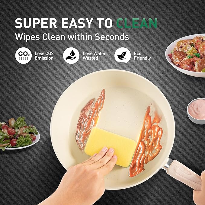 • Healthy Non-Stick Granite Coating: Our pan set interior & exterior is coated by high performance non-stick granite coating, which makes the nonstick skillet easy to cook and clean. It means minimum oil or butter useing for healthy diet cooking and easier do a better cooking