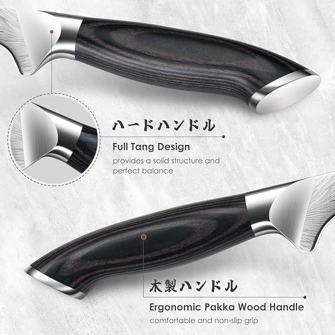 - [Ultra-Sharp and Precise Blade] Sharpness is paramount for any knife, and we ensure to provide you with the sharpest blade in the market. Our 2mm thick boning knife blade, hand-polished by experienced craftsmen, maintains long-lasting sharpness and precision for all your cutting needs. With a 12° blade angle, our boning knife is sharper and smoother for efficient cutting