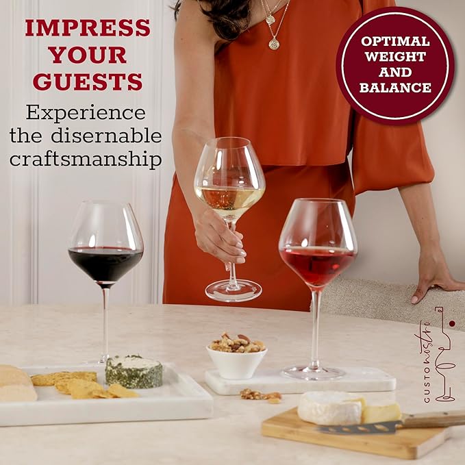 Gusto Nostro Crystal Wine Glasses Set of 4, 22 Oz Long Stem Modern Wine Glasses for White and Red Wine, Dishwasher Safe, Fancy, Elegant, Large and Tall Wine Glass for Wedding Christmas Anniversary