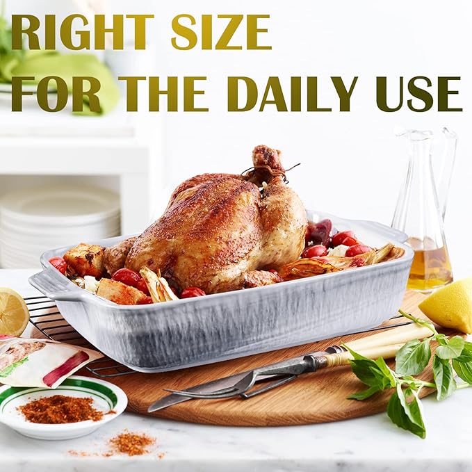 • Easy To Use - The rectangular baking dish with convenient handles makes it easier for you to pick it up from the oven or freezer