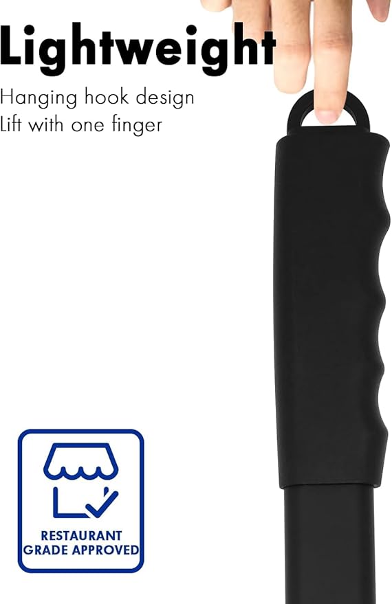 • RESTAURANT GRADE: This professional pizza turning peel is equipped with a diameter 14" of head and 15.7" length of handle, Lightweight, The included professional silicone handle cover prevents your hands from being burned.