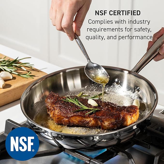• Crafted for Performance Cooking: The heavy-duty tri-ply stainless steel construction ensures durability for years to come. Certified by NSF, this stainless steel pots and pans set meets the highest professional standards for quality and durability