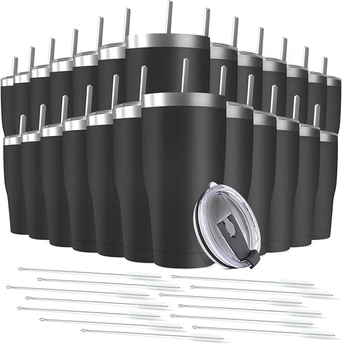 25 Pack 20oz Stainless Steel Tumblers Bulk Reusable Travel Mugs with Lid, Double Wall Powder Coated Coffe Cup for Home, Office, Outdoor Suitable for Vehicle Cup Holders