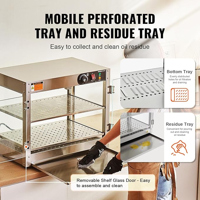 • Showcase Your Food: The thickened tempered glass not only insulates but also showcases your food from all angles. Combined with a lighting lamp, it highlights the enticing colors of your food under the light.
