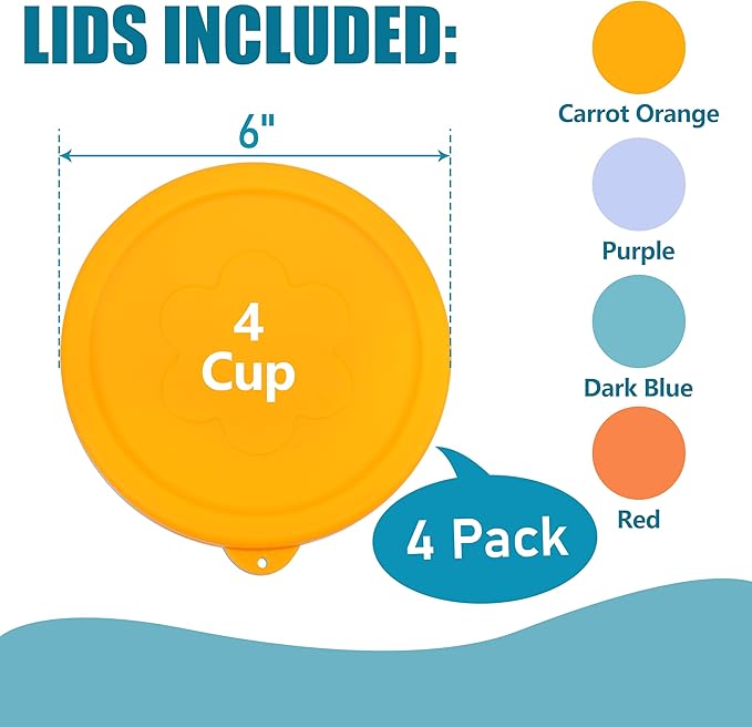 4 Cup Round Silicone Replacement Lids for Pyrex 7201-PC Glass Bowls, 4 Pack Storage Cover, Microwave & Dishwasher & Freezer Safe (Container not Included)