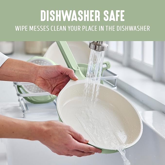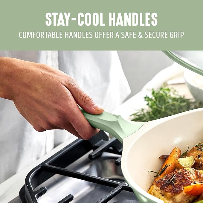 • HEALTHY CERAMIC NONSTICK COATING - FREE OF TOXINS: Derived from sand, our ceramic nonstick delivers effortless release and quick cleanup—plus it’s free of PFAS, PFOA, lead, and cadmium for worry-free cooking.