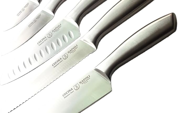 • STAINLESSS STEEL HANDLE: Each knife has been precisely constructed to give you superior handing feeling. This set are equipped with extraordinary stainless steel to make them durable than other knife sets and ensure you will be easy to maintain this sets in a proper way.