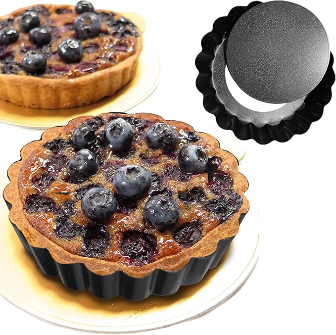 • 【Durable Material & Special Design】Made of heavy-duty carbon steel, the tart pan is sturdy, durable and rust-resistant. With removable bottom and PFOA free non-stick coating design, the bottom can be easily popped out from the pan and wont stick to the quiche tart. It is the best choice for families to make tarts or quiches.