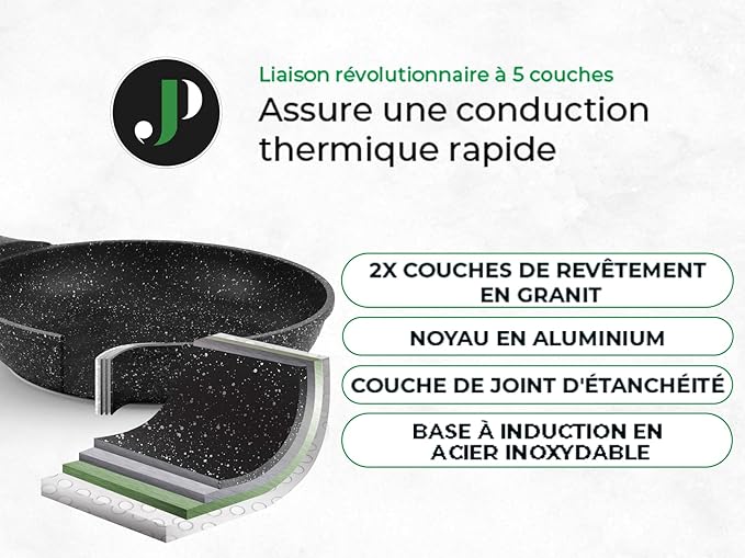 • High-quality non stick cookware:granite features non stick pan, ceramic nonstick frying pan and non toxic cookware safe for daily use. It is recommended to wash the cookware by hand, as cleaning it is quick and easy — simply wipe with a paper towel or rinse with water. Safe and non toxic, free of PFOA, PFOS, APEO lead, cadmium and other toxic substances