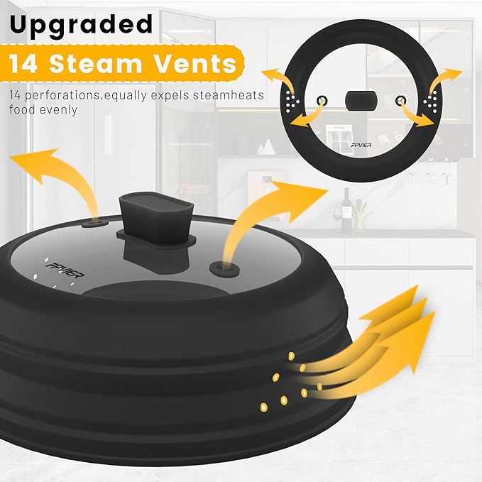 • 【Upgraded 16 Steam Vents】 Compared to the regular one, our upgraded microwave food cover has 14 extra side steam vents. Your food will be no more wet with this upgraded collapsible microwave splatter cover.