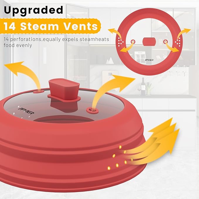 • 【Upgraded 16 Steam Vents】 Compared to the regular one, our upgraded microwave food cover has 14 extra side steam vents. Your food will be no more wet with this upgraded collapsible microwave splatter cover.