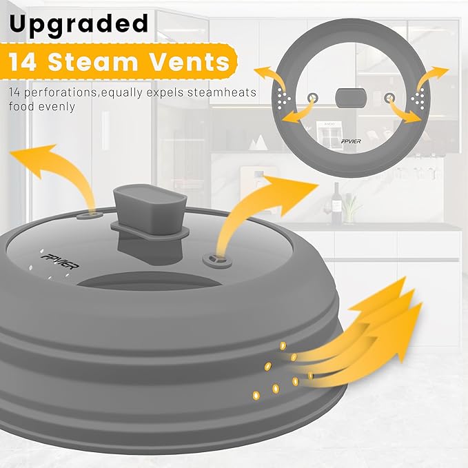• 【Upgraded 16 Steam Vents】 Compared to the regular one, our upgraded microwave food cover has 14 extra side steam vents. Your food will be no more wet with this upgraded collapsible microwave splatter cover.