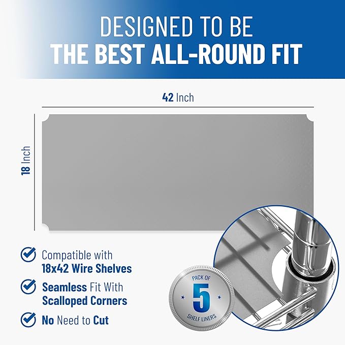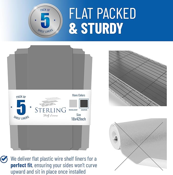 Shelf Liners for Wire Shelf System: Set of 5 in Graphite: 18 x 42 inch: Plastic Wire Shelving Shelf Mats